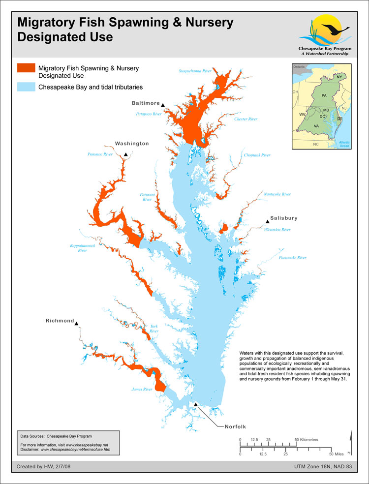 Compare the two maps. One shows the nursery ground for migratory fish, the other is a NASA photo of rainfall sedimentation. Note the close association. Isn’t it time we all got serious and took steps to save the Bay. Each of us could install a raingarden and reduce our sediment contribution? Local municipalities and home owner groups, such as the Columbia Association, are making it easy for us with their cost sharing programs. Reach and find out what resources are available to you.