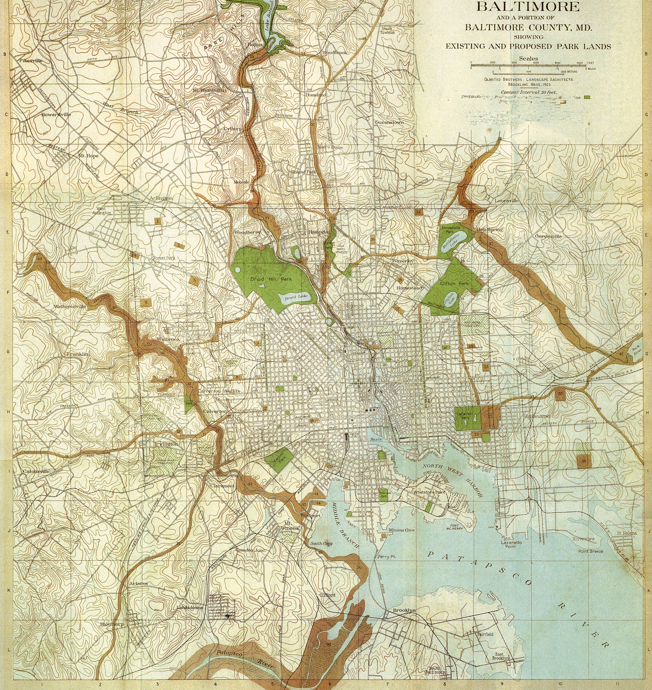 “Few American cities were so extensively influenced by the Olmsted Brothers as Baltimore. Only one of many projects of the Olmsted firm in Baltimore from 1900 up until World War II, the 1904 Report was more than a parks plan. This foundation document established City Planning as important for sustaining the quality of urban living in Baltimore and nationally for the next century.”